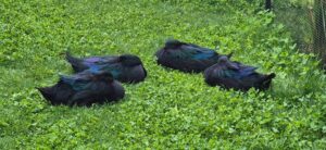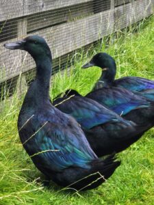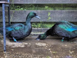 Met zijn donkergekleurde verenpak die in de zon een prachtige groene kleur laat zien is de Cayuga een imposante verschijning.